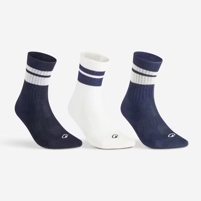 جوراب تنیس ساق بلند دکتلون DECATHLON RS 500 پک سه تایی – سرمه ای/بژ