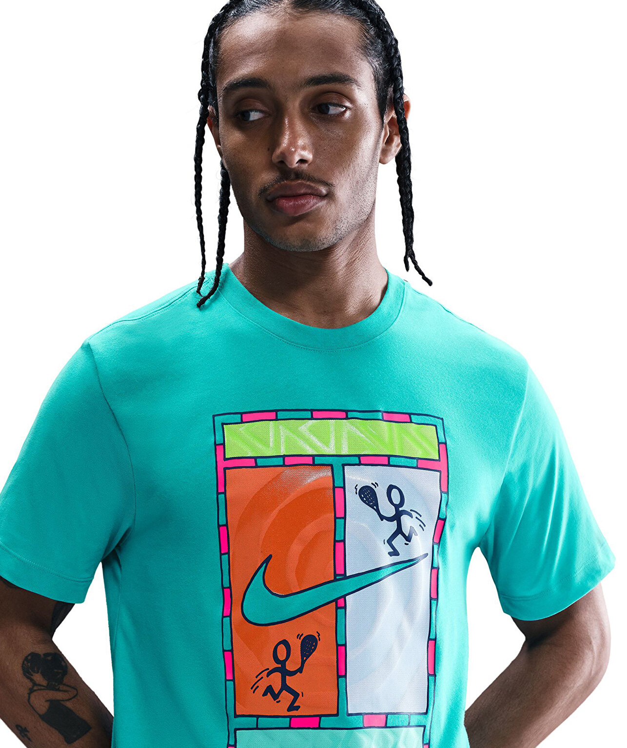NikeCourt Dri-FIT Graphic Print Tennis T-shirt انتخابی ایدهآل برای کسانی است که به دنبال ترکیب راحتی، عملکرد بالا و طراحی مدرن در زمین تنیس هستند.
